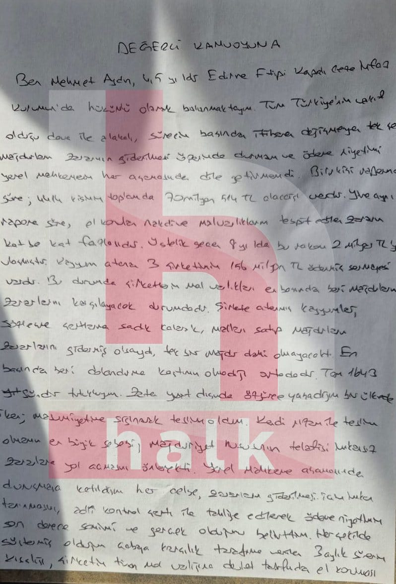 “Ben Mehmet Aydın, 4,5 yıldır Edirne F Tipi Kapalı Ceza İnfaz Kurumu’nda hükümlü olarak bulunmaktayım.