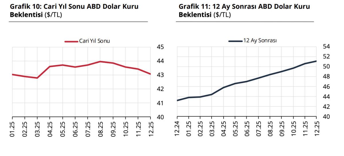 12 ay sonrası döviz kuru beklentisi ise bir önceki anket döneminde 50,62 TL iken, bu anket döneminde 51,08 TL olarak gerçekleşti.